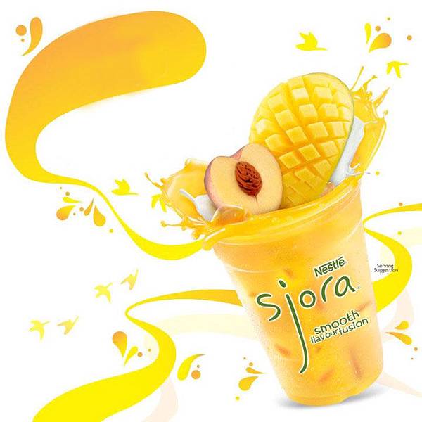 这是nestle新推出的轻奶昔类Sjora芒果蜜桃。脱脂奶混合天然水果调配而成的饮料。
